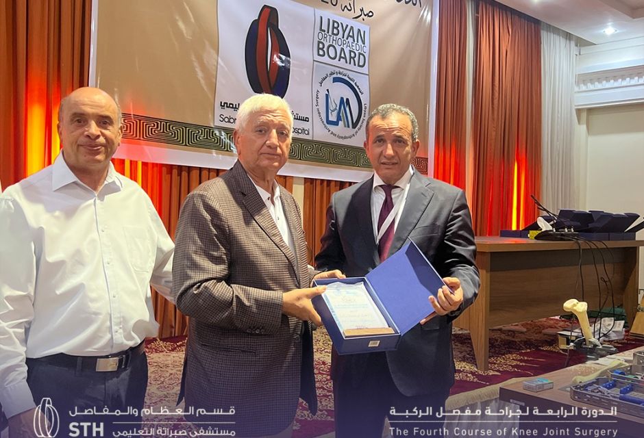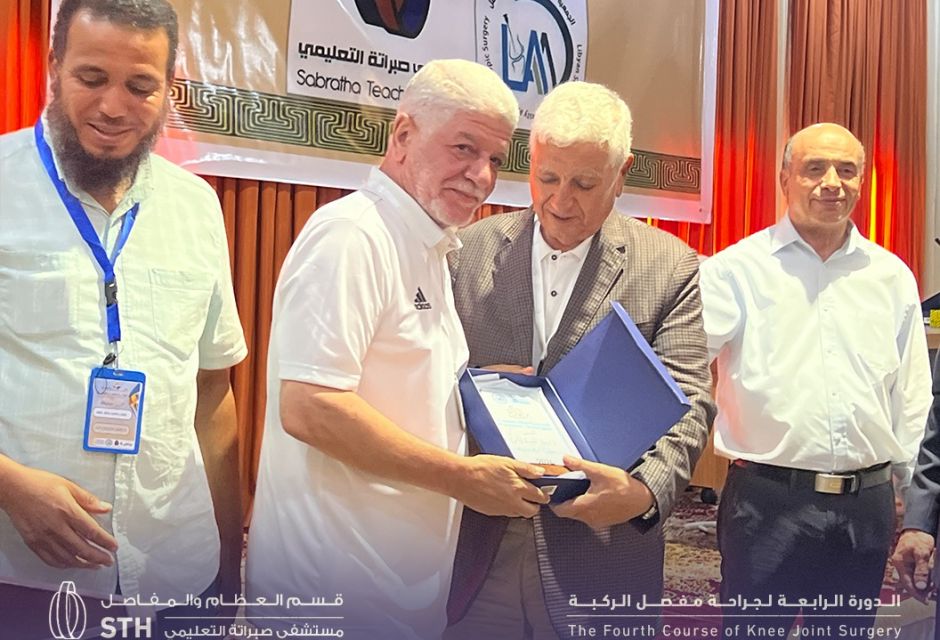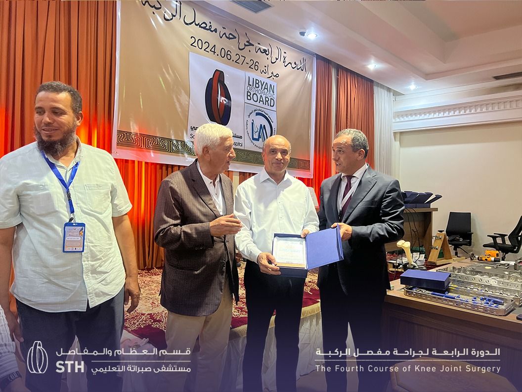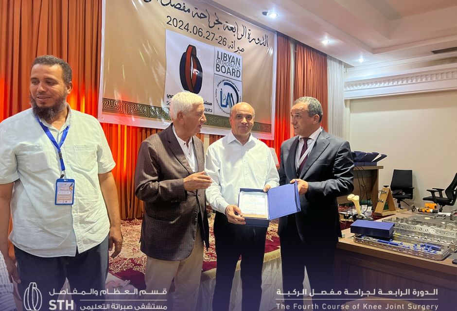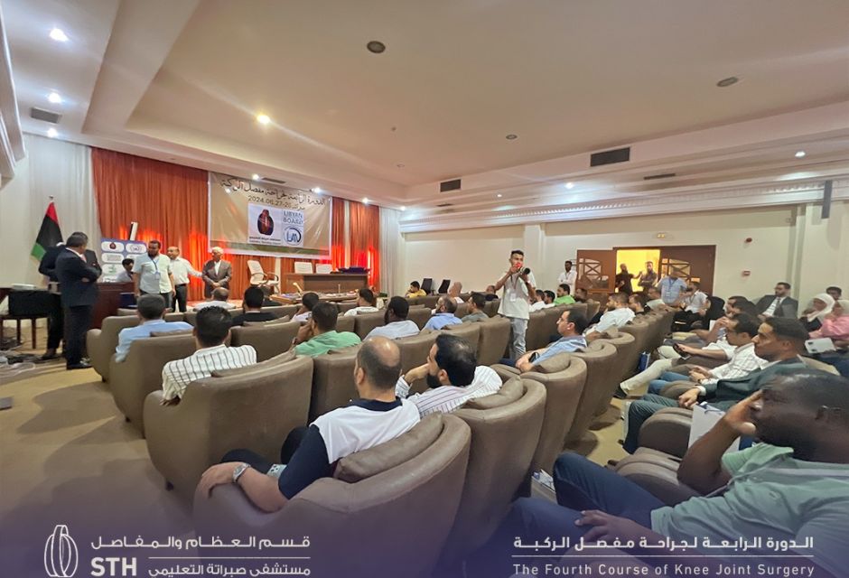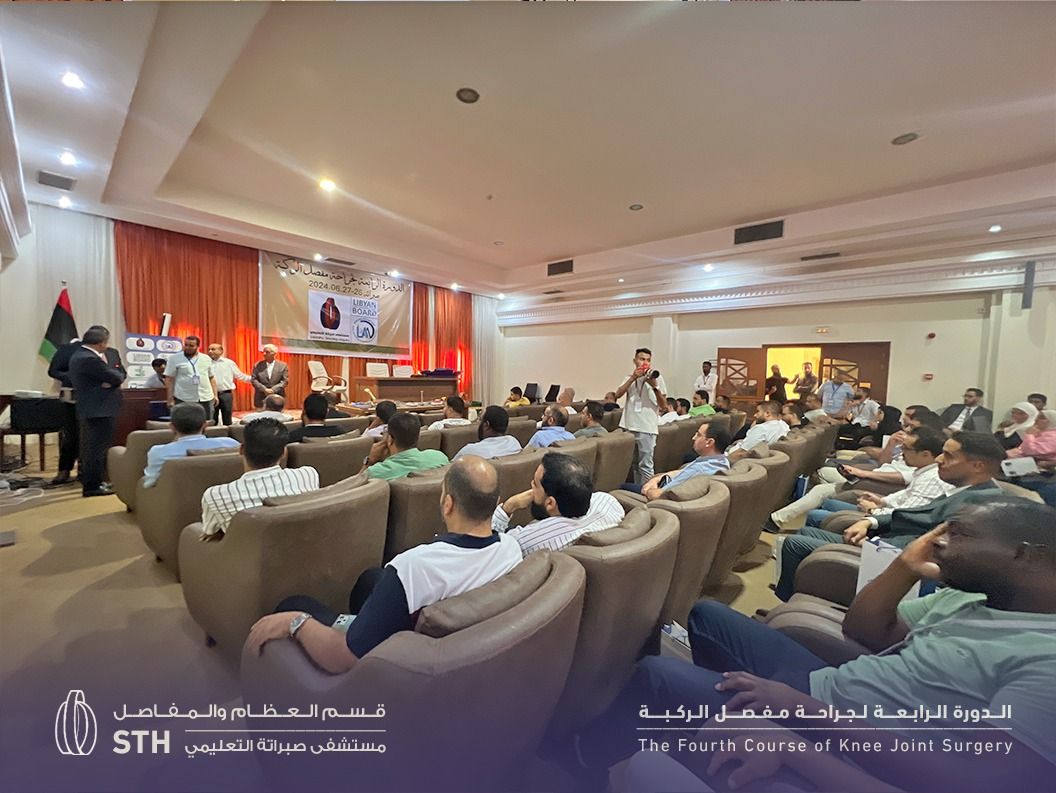 The fourth edition of the Knee Joint Surgery training course was launched at the Tellil complex, under supervision of Sabratha Teaching Hospital. The two-day course began in the morning with welcoming remarks addressed to the doctors who arrived from various Libyan cities, representing the specialties of orthopedics and joint replacement.