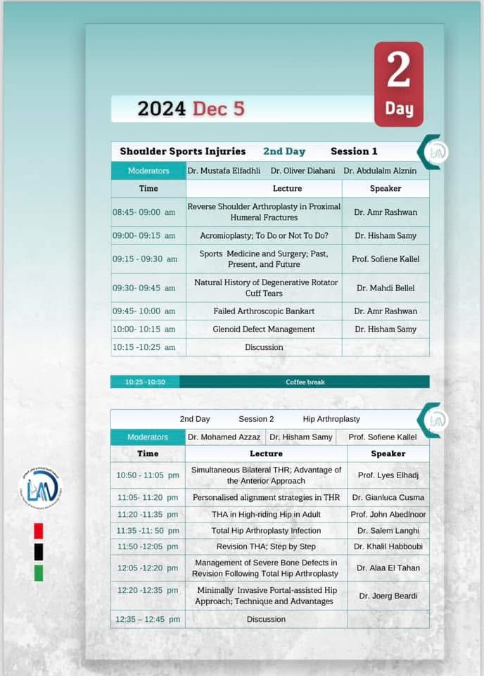 دعونا نأخذكم في جولة سريعة مع المتحدثين المتميزين الذين يساهمون في رسم ملامح المستقبل الطبي وتطوير خدمات جراحة المفاصل. انضموا إلينا في رحلة من التبادل العلمي والخبرات الثرية